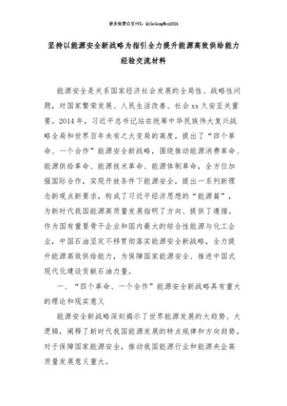 【七哥公文】2024年:坚持以能源安全新战略为指引全力提升能源高效供给能力经验交流材料+更多免费公文+VX:QiGeGongWen2024