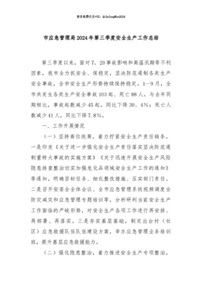 / 【七哥公文】2024年:市应急管理局2024年第三季度安全生产工作总结+更多免费公文+VX:QiGeGongWen2024