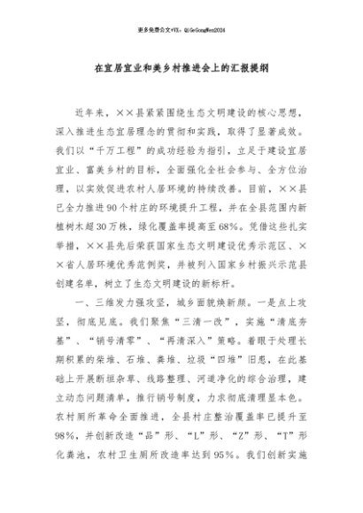 / 【七哥公文】2024年:在宜居宜业和美乡村推进会上的汇报提纲+更多免费公文+VX:QiGeGongWen2024
