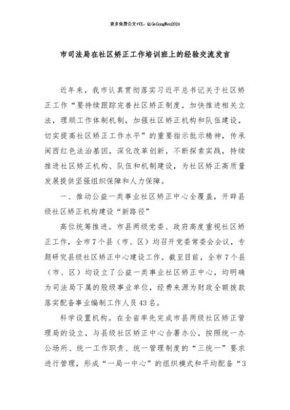 / 【七哥公文】2024年:市司法局在社区矫正工作培训班上的经验交流发言+更多免费公文+VX:QiGeGongWen2024
