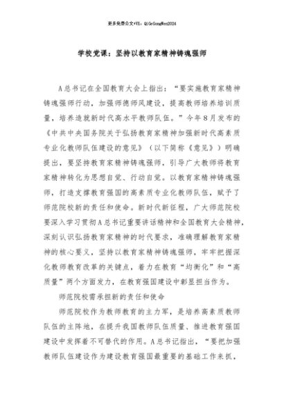 / 【七哥公文】2024年:学校党课:坚持以教育家精神铸魂强师+更多免费公文+VX:QiGeGongWen2024