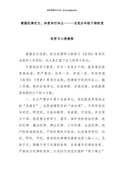 【七哥公文】2024年:增强纪律定力,知责知行知止——一名党办年轻干部的党纪学习心得感悟+更多免费公文+VX:QiGeGongWen2024