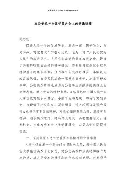 / 【七哥公文】2024年:在公安机关全体党员大会上的党课讲稿+更多免费公文+VX:QiGeGongWen2024