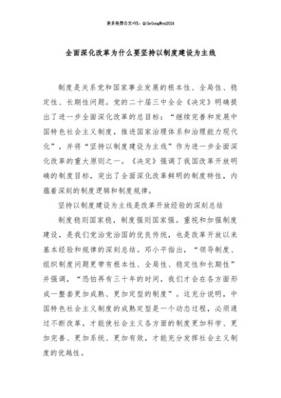 / 【七哥公文】2024年:全面深化改革为什么要坚持以制度建设为主线+更多免费公文+VX:QiGeGongWen2024