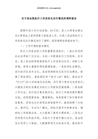 / 【七哥公文】2024年:关于县法院执行工作实体化运行情况的调研报告+更多免费公文+VX:QiGeGongWen2024