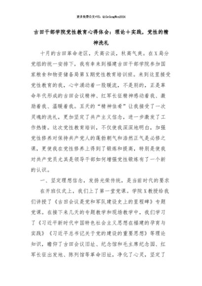 【七哥公文】2024年:古田干部学院党性教育心得体会:理论+实践,党性的精神洗礼+更多免费公文+VX:QiGeGongWen2024