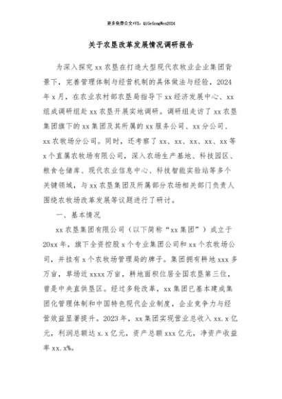 / 【七哥公文】2024年:关于农垦改革发展情况调研报告+更多免费公文+VX:QiGeGongWen2024