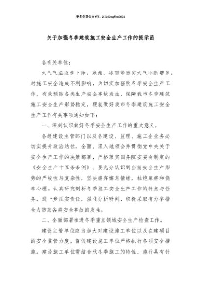 / 【七哥公文】2024年:关于加强冬季建筑施工安全生产工作的提示函+更多免费公文+VX:QiGeGongWen2024