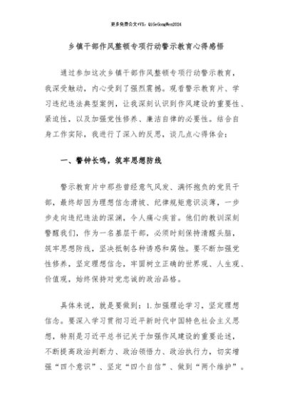 / 【七哥公文】2024年:乡镇干部作风整顿专项行动警示教育心得感悟+更多免费公文+VX:QiGeGongWen2024