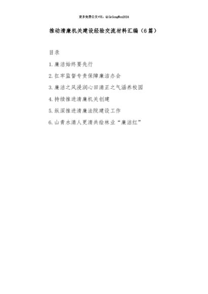 / 【七哥公文】2024年:(6篇)推动清廉机关建设经验交流材料汇编+更多免费公文+VX:QiGeGongWen2024