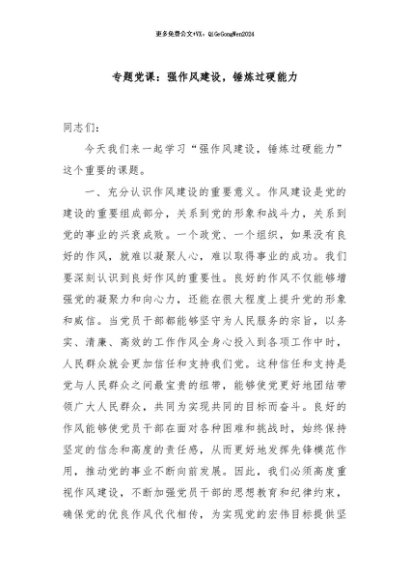 / 【七哥公文】2024年:专题党课:强作风建设,锤炼过硬能力+更多免费公文+VX:QiGeGongWen2024