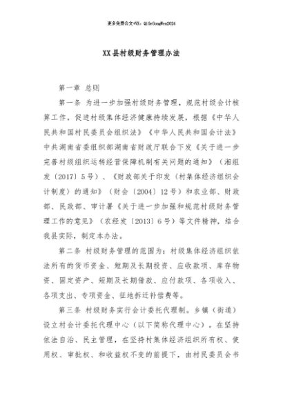 【七哥公文】2024年:XX县村级财务管理办法+更多免费公文+VX:QiGeGongWen2024