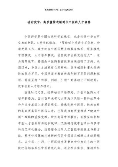 / 【七哥公文】2024年:研讨发言:高质量推进新时代中医药人才培养+更多免费公文+VX:QiGeGongWen2024
