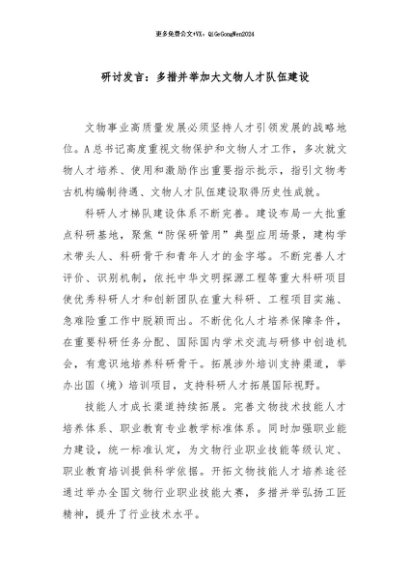 / 【七哥公文】2024年:研讨发言:多措并举加大文物人才队伍建设+更多免费公文+VX:QiGeGongWen2024