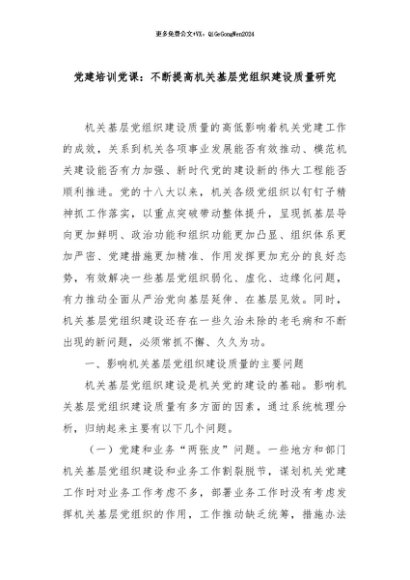 / 【七哥公文】2024年:党建培训党课:不断提高机关基层党组织建设质量研究+更多免费公文+VX:QiGeGongWen2024