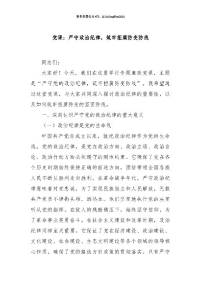 / 【七哥公文】2024年:党课:严守政治纪律,筑牢拒腐防变防线+更多免费公文+VX:QiGeGongWen2024