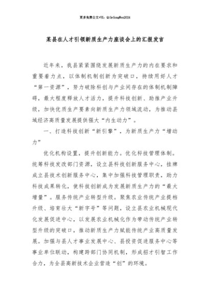 / 【七哥公文】2024年:某县在人才引领新质生产力座谈会上的汇报发言+更多免费公文+VX:QiGeGongWen2024