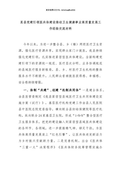 【七哥公文】2024年:某县党建引领医共体建设推动卫生健康事业高质量发展工作经验交流材料+更多免费公文+VX:QiGeGongWen2024