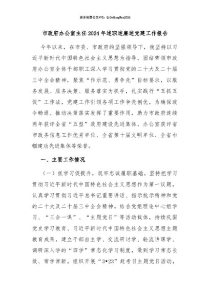 【七哥公文】2024年:市政府办公室主任2024年述职述廉述党建工作报告 (1)+更多免费公文+VX:QiGeGongWen2024