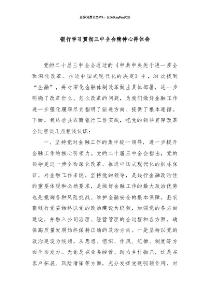 / 【七哥公文】2024年:银行学习贯彻三中全会精神心得体会 (1)+更多免费公文+VX:QiGeGongWen2024