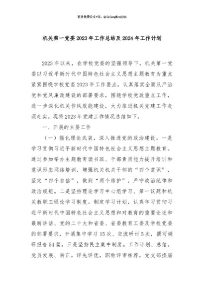 【七哥公文】2024年:机关第一党委2023年工作总结及2024年工作计划+更多免费公文+VX:QiGeGongWen2024
