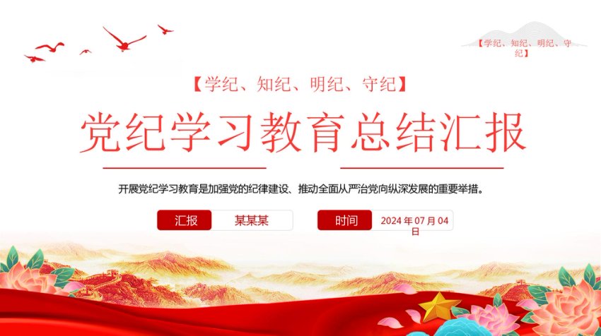 【七哥公文】2024年:党纪学习教育总结汇报PPT精美创意2024年党政部门工作总结模板+更多免费公文+VX:QiGeGongWen2024