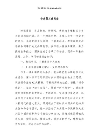 / 【七哥公文】2024年:公务员工作总结+更多免费公文+VX:QiGeGongWen2024