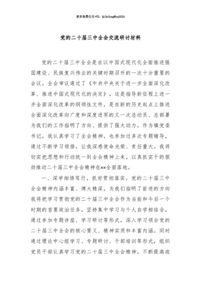 / 【七哥公文】2024年:党的二十届三中全会交流研讨材料 (1)+更多免费公文+VX:QiGeGongWen2024