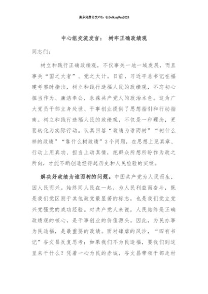 / 【七哥公文】2024年:中心组交流发言: 树牢正确政绩观+更多免费公文+VX:QiGeGongWen2024