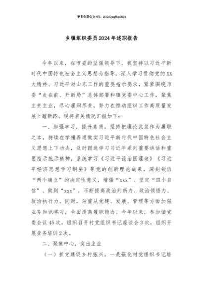 / 【七哥公文】2024年:乡镇组织委员2024年述职报告 (1)+更多免费公文+VX:QiGeGongWen2024