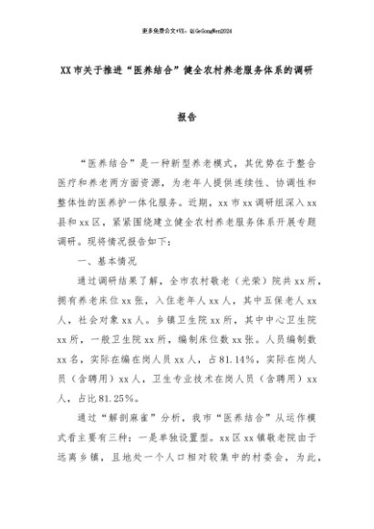 【七哥公文】2024年:XX市关于推进“医养结合”健全农村养老服务体系的调研报告+更多免费公文+VX:QiGeGongWen2024