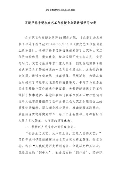 / 【七哥公文】2024年:习近平总书记在文艺工作座谈会上的讲话学习心得+更多免费公文+VX:QiGeGongWen2024