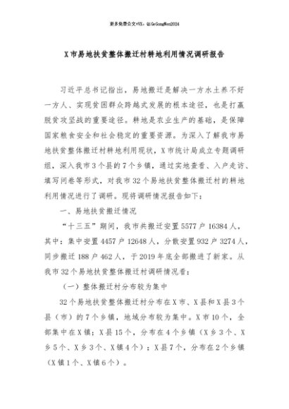 / 【七哥公文】2024年:X市易地扶贫整体搬迁村耕地利用情况调研报告+更多免费公文+VX:QiGeGongWen2024