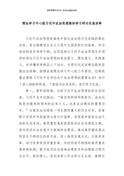 / 【七哥公文】2024年:理论学习中心组习近平法治思想集体学习研讨交流材料+更多免费公文+VX:QiGeGongWen2024