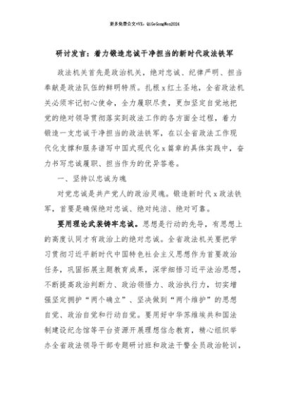 / 【七哥公文】2024年:研讨发言:着力锻造忠诚干净担当的新时代政法铁军+更多免费公文+VX:QiGeGongWen2024