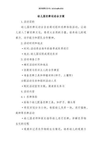 / 【七哥公文】2024年:幼儿园农耕运动会方案 (1)+更多免费公文+VX:QiGeGongWen2024