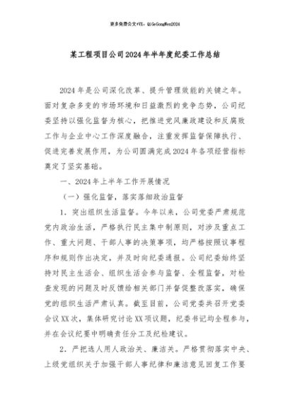 【七哥公文】2024年:某工程项目公司2024年半年度纪委工作总结 (1)+更多免费公文+VX:QiGeGongWen2024
