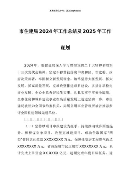 【七哥公文】2024年:市住建局 2024年工作总结及2025 年工作谋划+更多免费公文+VX:QiGeGongWen2024
