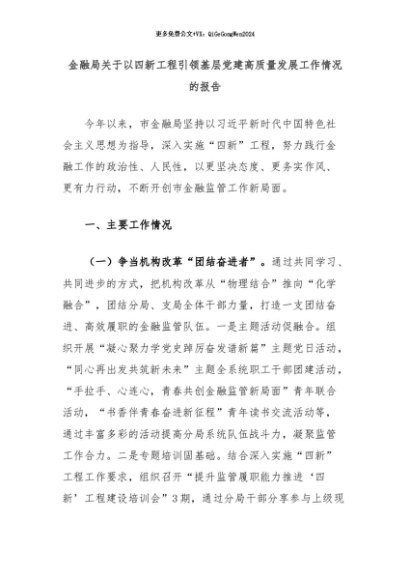 【七哥公文】2024年:金融局关于以四新工程引领基层党建高质量发展工作情况的报告+更多免费公文+VX:QiGeGongWen2024
