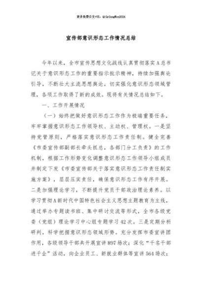 / 【七哥公文】2024年:宣传部意识形态工作情况总结+更多免费公文+VX:QiGeGongWen2024