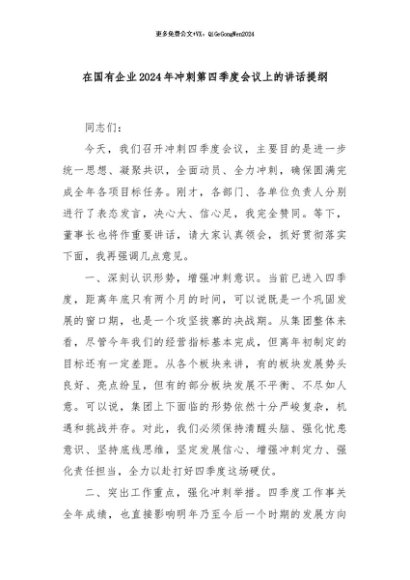 【七哥公文】2024年:在国有企业2024年冲刺第四季度会议上的讲话提纲 (1)+更多免费公文+VX:QiGeGongWen2024