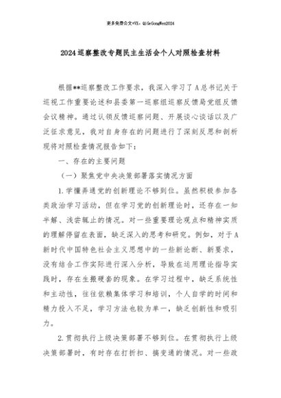 / 【七哥公文】2024年:2024巡察整改专题民主生活会个人对照检查材料+更多免费公文+VX:QiGeGongWen2024