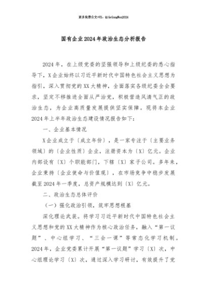 【七哥公文】2024年:国有企业2024年政治生态分析报告+更多免费公文+VX:QiGeGongWen2024