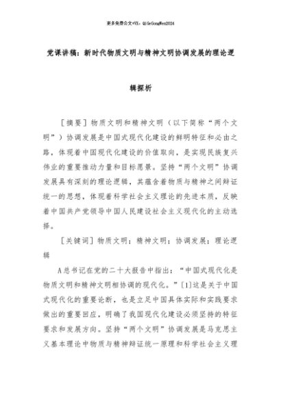 【七哥公文】2024年:党课讲稿:新时代物质文明与精神文明协调发展的理论逻辑探析+更多免费公文+VX:QiGeGongWen2024