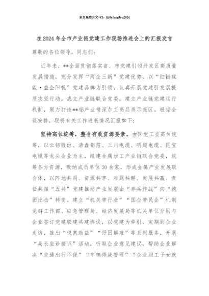 【七哥公文】2024年:在2024年全市产业链党建工作现场推进会上的汇报发言+更多免费公文+VX:QiGeGongWen2024