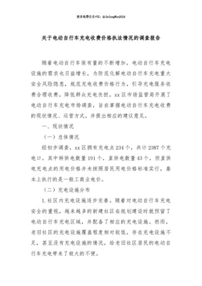 / 【七哥公文】2024年:关于电动自行车充电收费价格执法情况的调查报告+更多免费公文+VX:QiGeGongWen2024