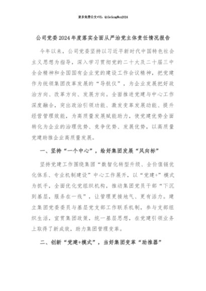 【七哥公文】2024年:公司党委2024年度落实全面从严治党主体责任情况报告 (1)+更多免费公文+VX:QiGeGongWen2024