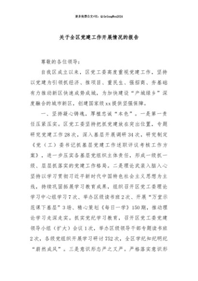 / 【七哥公文】2024年:关于全区党建工作开展情况的报告+更多免费公文+VX:QiGeGongWen2024