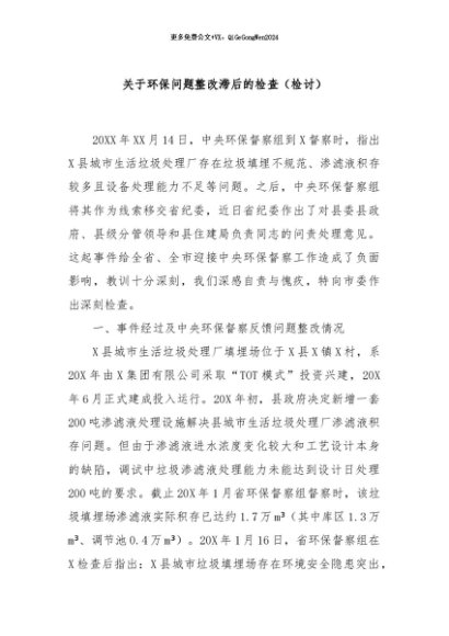 / 【七哥公文】2024年:关于环保问题整改滞后的检查(检讨) (1)+更多免费公文+VX:QiGeGongWen2024