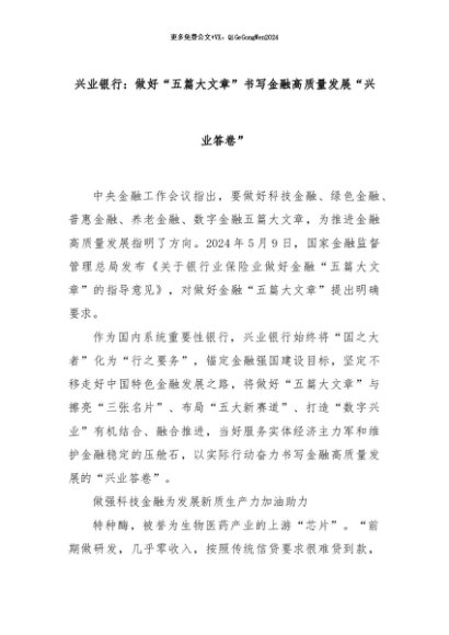 【七哥公文】2024年:兴业银行:做好“五篇大文章”书写金融高质量发展“兴业答卷” (1)+更多免费公文+VX:QiGeGongWen2024